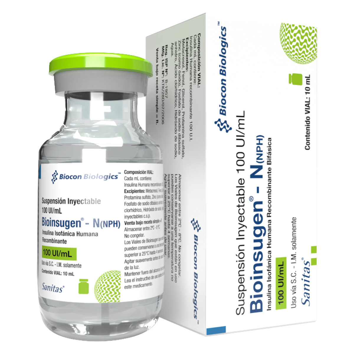 - Composición: Cada mL contiene: Insulina isofánica humana recombinante bifásica 100 U.I.